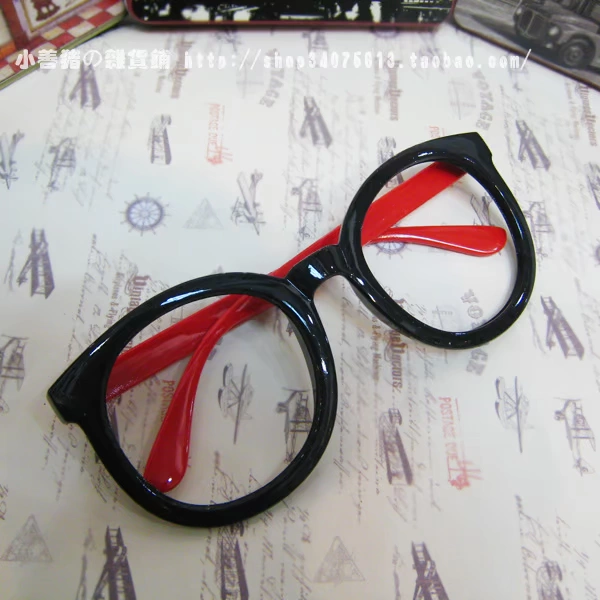 Thời trang văn học retro hộp lớn màu đen dày hình con mèo kính gọng kính không có ống kính