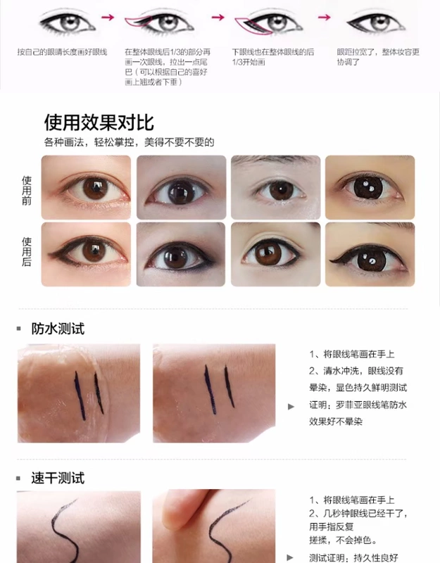 Luofeiya kẻ mắt bút bi nước khô nhanh không thấm nước không nở kẻ mắt người mới bắt đầu trang điểm mịn màng mắt to