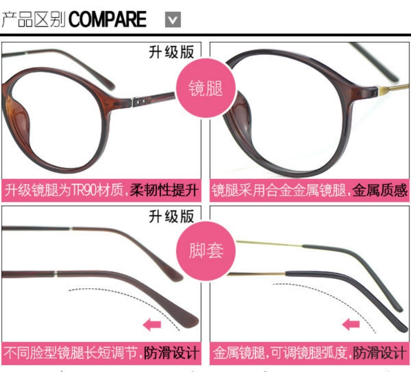 Kính gọng tròn retro nữ mặt siêu nhẹ có thể sánh với số lượng chân mỏng TR90 văn học mặt tròn mắt thủy triều