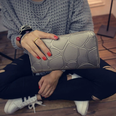 Thời trang Châu Âu và Mỹ hoang dã ví nữ dập nổi dây kéo dài đặc biệt cung cấp cho phụ nữ ví ví công suất lớn