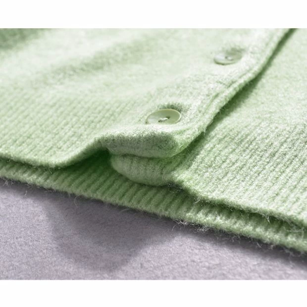 Phiên bản hàn quốc mùa xuân áo len cardigan mới dài tay cổ tròn dày tự trồng áo len màu rắn hoang dã áo khoác ngắn nữ