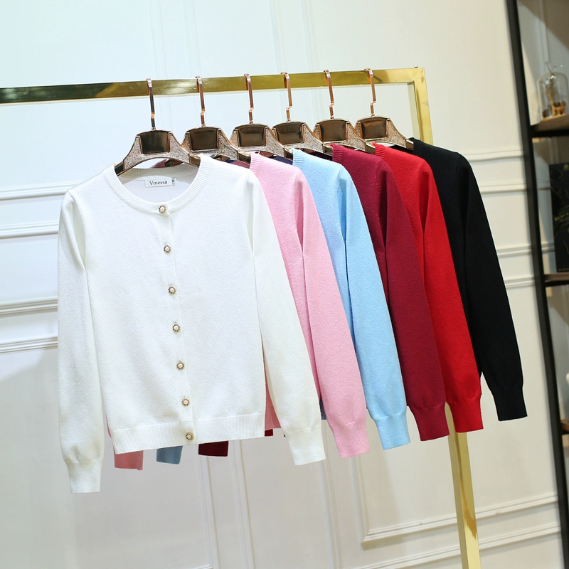 Áo len mùa thu mới của phụ nữ dài tay cổ tròn thon gọn phần ngắn dày dày áo len dày áo len dày