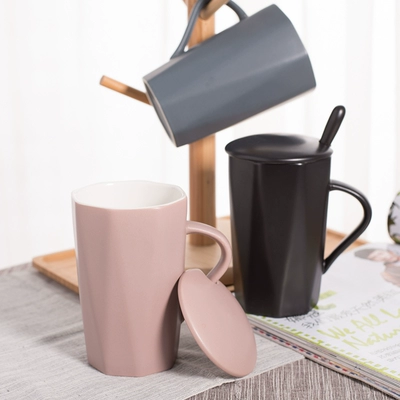 Cá tính sáng tạo văn phòng mug đơn giản vài cốc cà phê chén gốm với nắp muỗng sữa uống cup