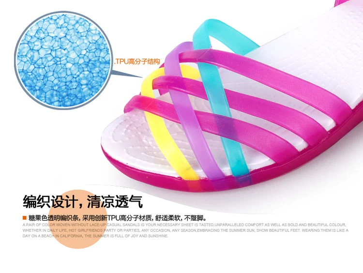 2018 mùa hè mới nêm với phụ nữ dép nhựa giày bãi biển với thạch đầy màu sắc bộ chân dép nhựa phụ nữ
