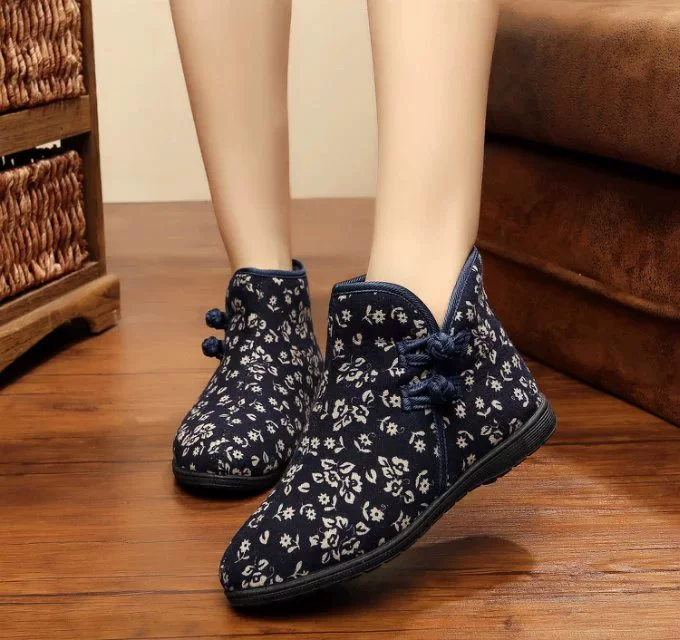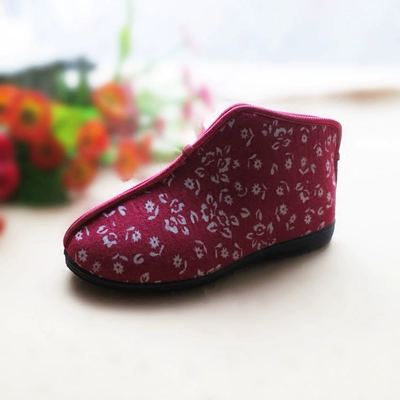 Bắc Kinh cũ thu đông cao để giúp giày cotton nữ cộng với nhung chống trơn hoa trung và già 2018 mới mềm mại có đầu tròn tròn để giữ ấm