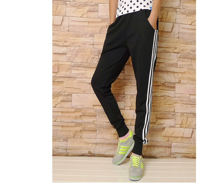 Mùa xuân và mùa đông và mùa đông mới cộng với quần nhung dày thể thao quần rộng sinh viên quần ba thanh chân quần thun eo quần nữ
