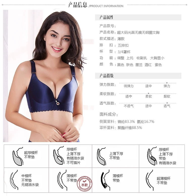 Một mảnh liền mạch mã lớn ngực lớn 90-200 pounds chất béo đồ lót nữ MM Không có vòng thép tập hợp đóng ngực áo ngực 008