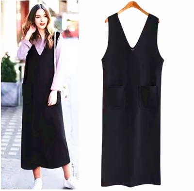 Váy mùa thu đông 2018 cho bà bầu Váy cotton cotton cho bà bầu V-cổ thon cho bà bầu vest dài váy vest