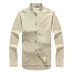 Phong cách Trung Quốc chất béo người đàn ông lanh áo sơ mi dài tay cộng với phân bón XL mùa xuân rắn màu đứng cổ áo kinh doanh áo sơ mi nam