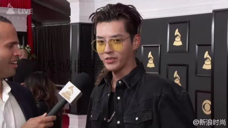 Wu Yifan với kính râm kính râm màu vàng Hàn Quốc cá tính nam ếch gương nữ người mẫu kính râm cận thị