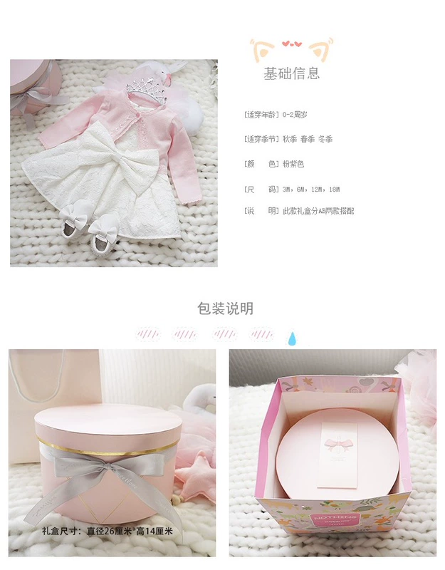 Hộp quà tặng cho bé sơ sinh Bộ quần áo cho bé công chúa váy mùa thu trăng rằm tặng quà trăm ngày