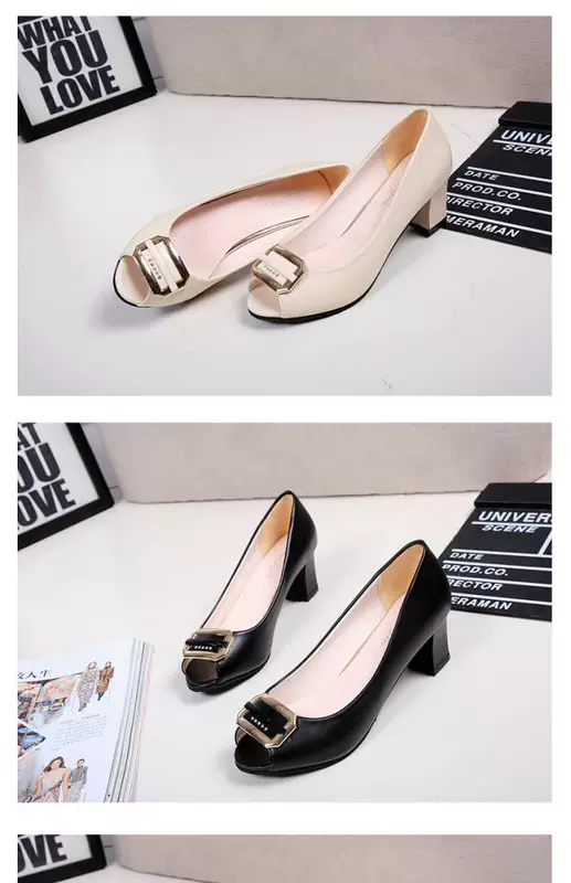Mùa hè mới 2018 sandal miệng cá nữ dày với khóa miệng nông khóa chuyên nghiệp với giày cao gót thời trang size lớn