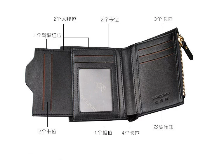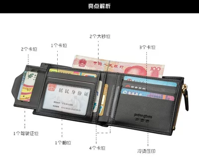Thanh niên nam ngắn ví nam Zip chuỗi thay đổi giấy phép lái xe ví thời trang đa thẻ vị trí mặt cắt ngang dọc