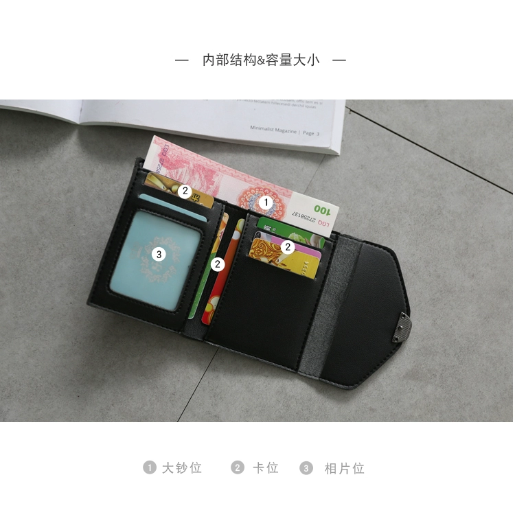 Ví nhỏ vòng ngắn gấp ba lần ví nữ mỏng 2018 mới đơn giản phiên bản tiếng Nhật và tiếng Hàn của ví nhỏ đa chức năng