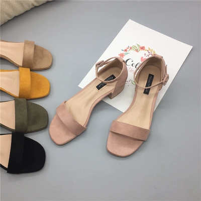 Mùa hè mới 2017 khí chất hoang dã vuông đầu từ dép khí chất giày hoang dã giày cao gót retro giày nữ