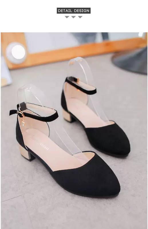 Giày cao gót ngắn và thấp 3cm Giày cao gót dày có mũi nhọn bằng da lộn dép nữ mùa hè khóa từ mùa xuân giày sinh viên