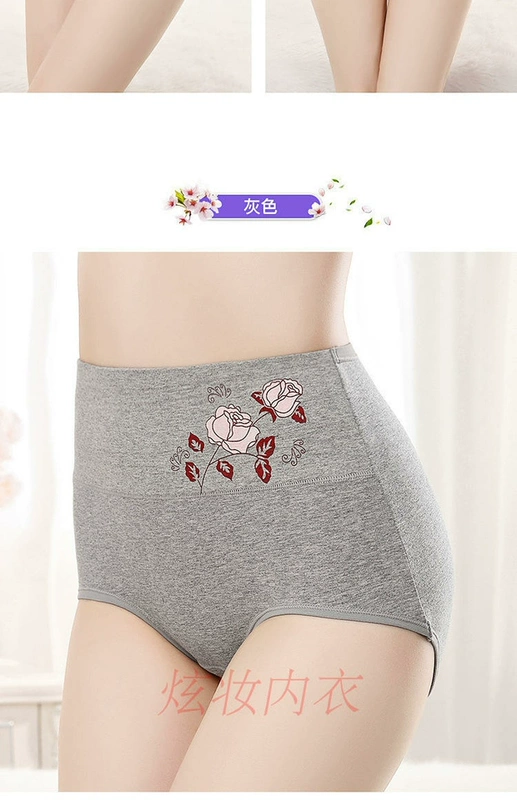 4 tải cotton cao eo của phụ nữ đồ lót 100% cotton bụng chất béo mm trung niên mẹ vải cotton tóm tắt