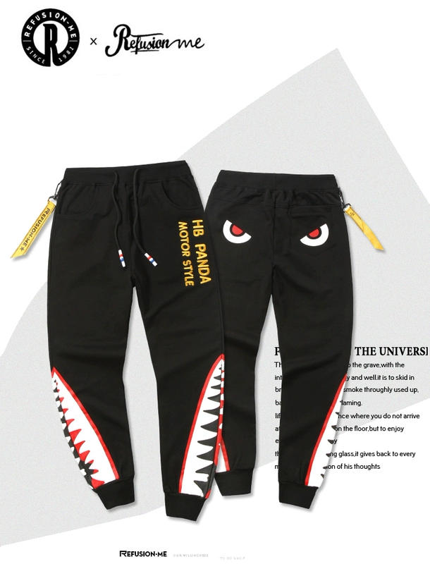 Mùa đông cá mập răng in chữ thêu cộng với nhung dày chân lỏng lẻo quần harem quần âu