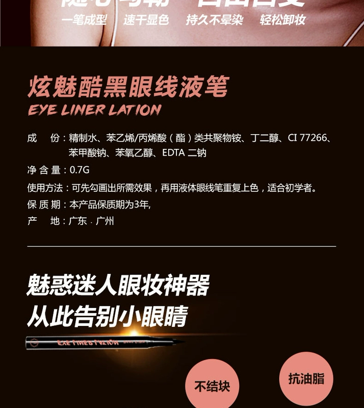 Bút kẻ mắt nữ Meiyan Phường kẻ mắt nữ không thấm nước không nở, không thấm mồ hôi, mắt to, không tẩy, trang điểm, màu đen bền màu