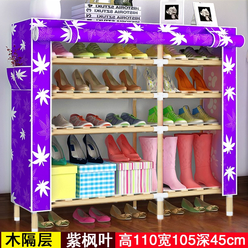 Gỗ rắn giá giày lắp ráp đơn giản nhiều lớp chống bụi kết hợp phân loại lưu trữ đơn giản kinh tế vải duy nhất đôi giày tủ