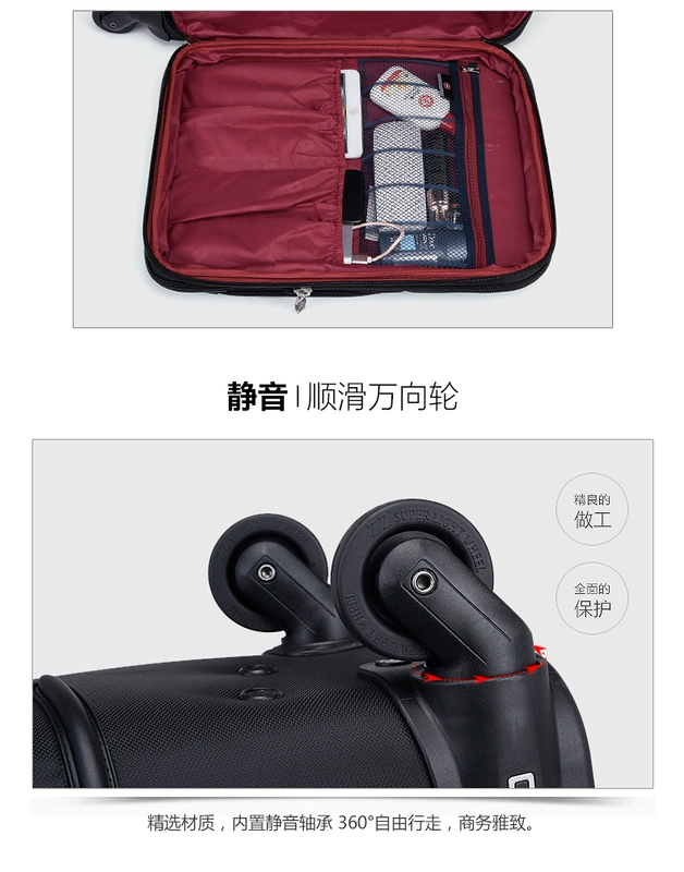 WEMGE Thụy Sĩ quân đội dao trường hợp xe đẩy bánh xe phổ Oxford vải vali hộp mềm nội trú Hàn Quốc phiên bản của vali nam