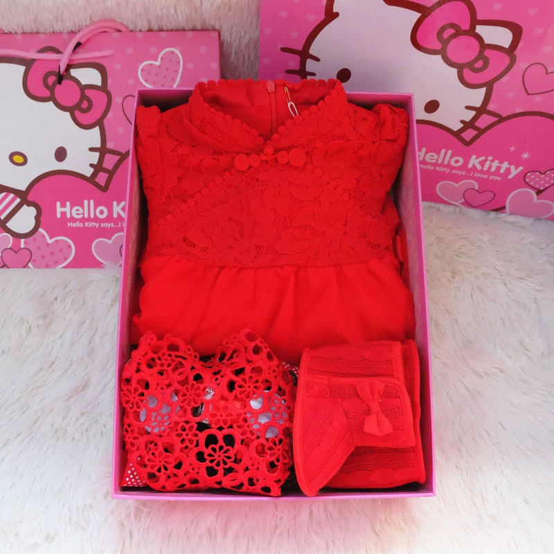 Hộp quà bé công chúa sườn xám váy bé gái 100 tuổi váy váy kho báu của phụ nữ cộng với khóa nhung váy hộp quà