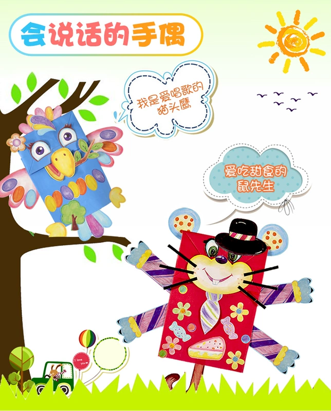 Câu chuyện 3D tay con rối mẫu giáo làm bằng tay trẻ em sáng tạo ba chiều DIY bộ đồ chơi thực hành