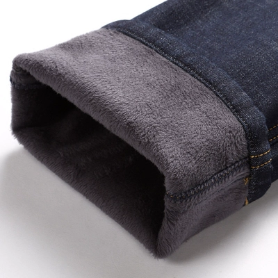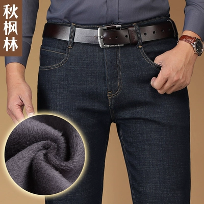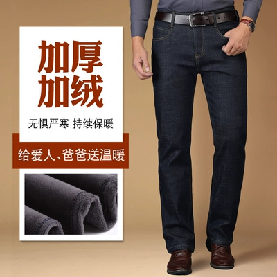 Mùa đông dày cộng với quần jean nam trung niên nhung cao eo lỏng lẻo mùa thu và mùa đông cha trung niên ấm áp nhung ấm