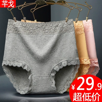 Quần lót 3 eo cao bằng vải cotton cotton cotton thoáng khí bụng thoải mái