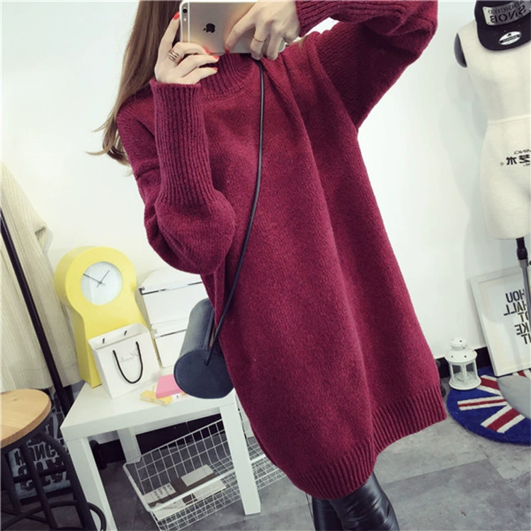 Áo bà bầu mới áo len nửa cao cổ áo thun trong phần dài rộng cỡ lớn dày đặc màu ấm mang thai mùa đông thủy triều