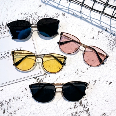 Kính râm màu đỏ với kính râm đại dương kính râm tròn mặt tròn kính râm phong cách Hồng Kông thời trang hoang dã cá tính kính râm nữ