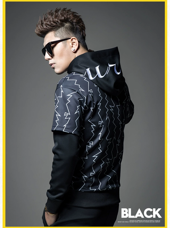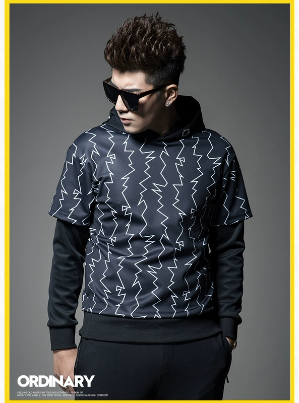 SXF Saint Xi Fan đội mũ trùm đầu của nam giới áo len cá tính khâu giả hai mảnh áo in ấn mùa xuân thể thao áo len nam triều