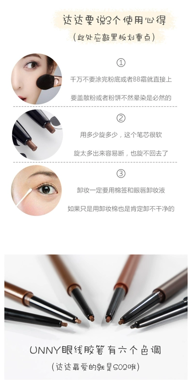 Hàn Quốc bút chì kẻ mắt unny màu nâu không dễ bị nhòe mắt lớn bắt đầu không thấm nước và không thấm mồ hôi không tẩy trắng lâu