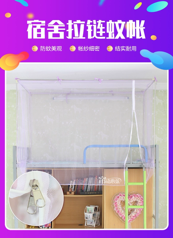 Dây kéo dây kéo lưới sinh viên đại học nữ ngủ giường muỗi lưới bé trai và bé gái ký túc xá mã hóa tài khoản thoáng khí