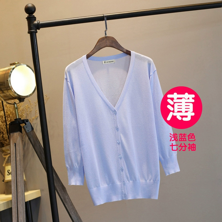 Mùa hè áo len mỏng cardigan nữ chất béo mm kích thước lớn băng lụa khăn choàng áo khoác điều hòa không khí áo sơ mi kem chống nắng 200 kg mùa xuân