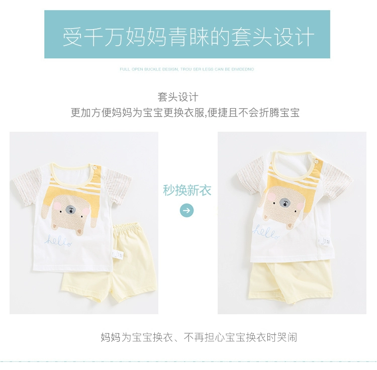 Tong Taixia new baby cotton nửa tay áo phù hợp với 9-12-18 tháng người đàn ông và phụ nữ vai mở ngắn tay áo quần short