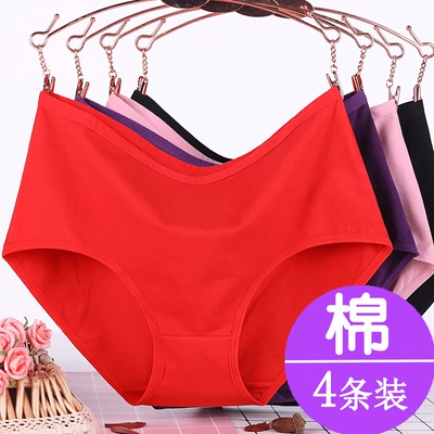 Đồ lót nữ trung niên và cao tuổi, cotton, eo cao, phụ nữ trung niên, mẹ, năm của mẹ, đồ lót màu đỏ, quần short cỡ lớn