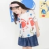 Trẻ em của Malaysia quần áo cô gái áo sơ mi ngắn tay 2018 mùa hè sản phẩm mới cổ áo mở áo sơ mi lỏng lẻo