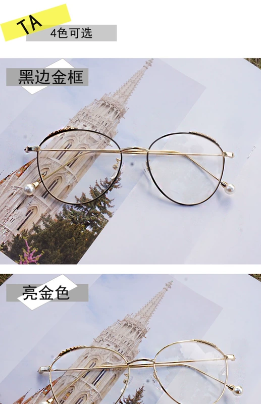 Kính lúa mì mới khung nữ thủy triều Harajuku retro kim loại tròn khung gương phẳng mặt lớn lá ngọc có thể được trang bị cận thị
