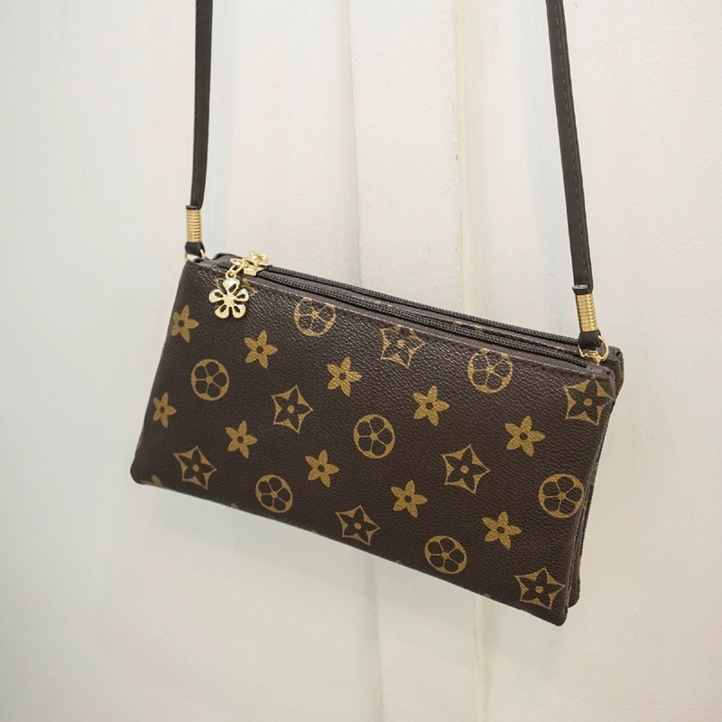 Khóa kéo đôi túi điện thoại nữ in ví dài ví chéo chéo túi nhỏ Phiên bản Hàn Quốc dung lượng lớn túi nhỏ