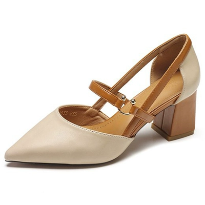 Phiên bản Hàn Quốc với giày đơn dày có khóa với giày cao gót nhọn 2019 mùa xuân mới