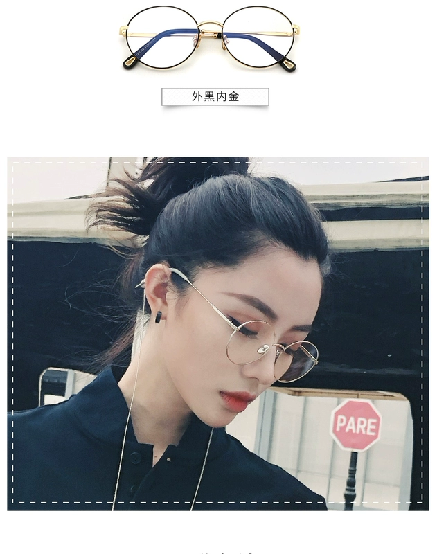 Qingmo tròn mặt kính dài khung nữ in retro phong cách Harajuku avant-gardene vành đai gương phẳng cận thị thủy triều mắt