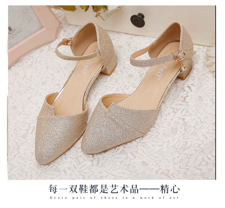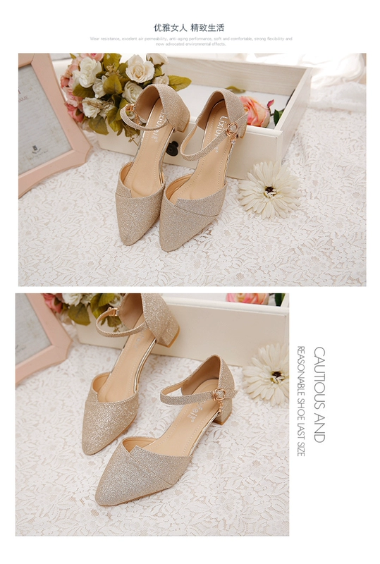Giày cao gót đế xuồng mới 2018 đế thấp nữ mùa hè mũi nhọn hoang dã dày có khóa chữ 3cm giày đơn