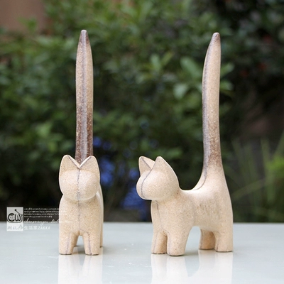 Đuôi dài đồ trang trí mèo con bằng gỗ thô thô trắng sơn tự làm màu vật liệu trang trí máy tính để bàn