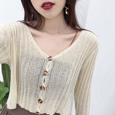 Áo len đầu thu nữ lười biếng áo len dài tay áo len mỏng cardigan rỗng ngắn khăn choàng lưới màu đỏ