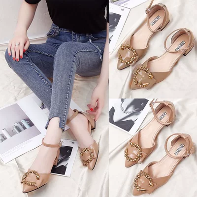 Giày xuân hè đế xuồng phiên bản Hàn Quốc hoang dã 2018 mới khóa dày với dép quai hậu nữ nông thấp gót giày nữ thấp