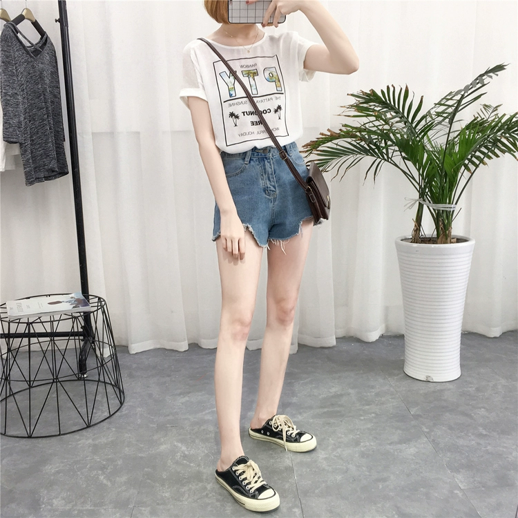 Top + quần short 2018 mùa hè mới retro in vòng cổ ngắn tay quần short váy quần phù hợp với nữ chic hoang dã