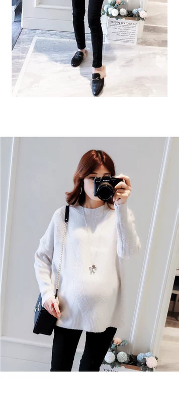Phụ nữ mang thai ở dưới cùng của áo sơ mi để mang thai phụ nữ áo len mùa thu nữ mùa thu và mùa đông lỏng lẻo phiên bản Hàn Quốc của áo bà bầu ấm áp dày đoạn ngắn