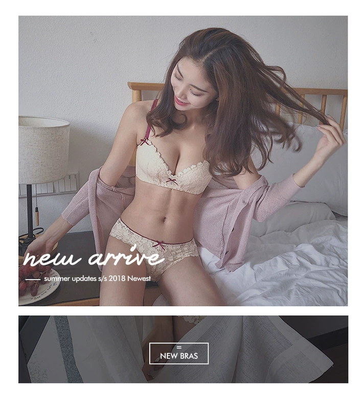 Silky Shadow tập hợp đồ lót không có vòng thép Trung bình dày mùa hè thoáng khí thoải mái liền mạch ren gợi cảm áo ngực nhỏ ngực