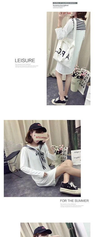 Trang phục bà bầu thu đông 2018 phiên bản Hàn Quốc mới của phần dài tay áo cotton dài tay áo sơ mi nữ bầu bầu đầm mùa thu